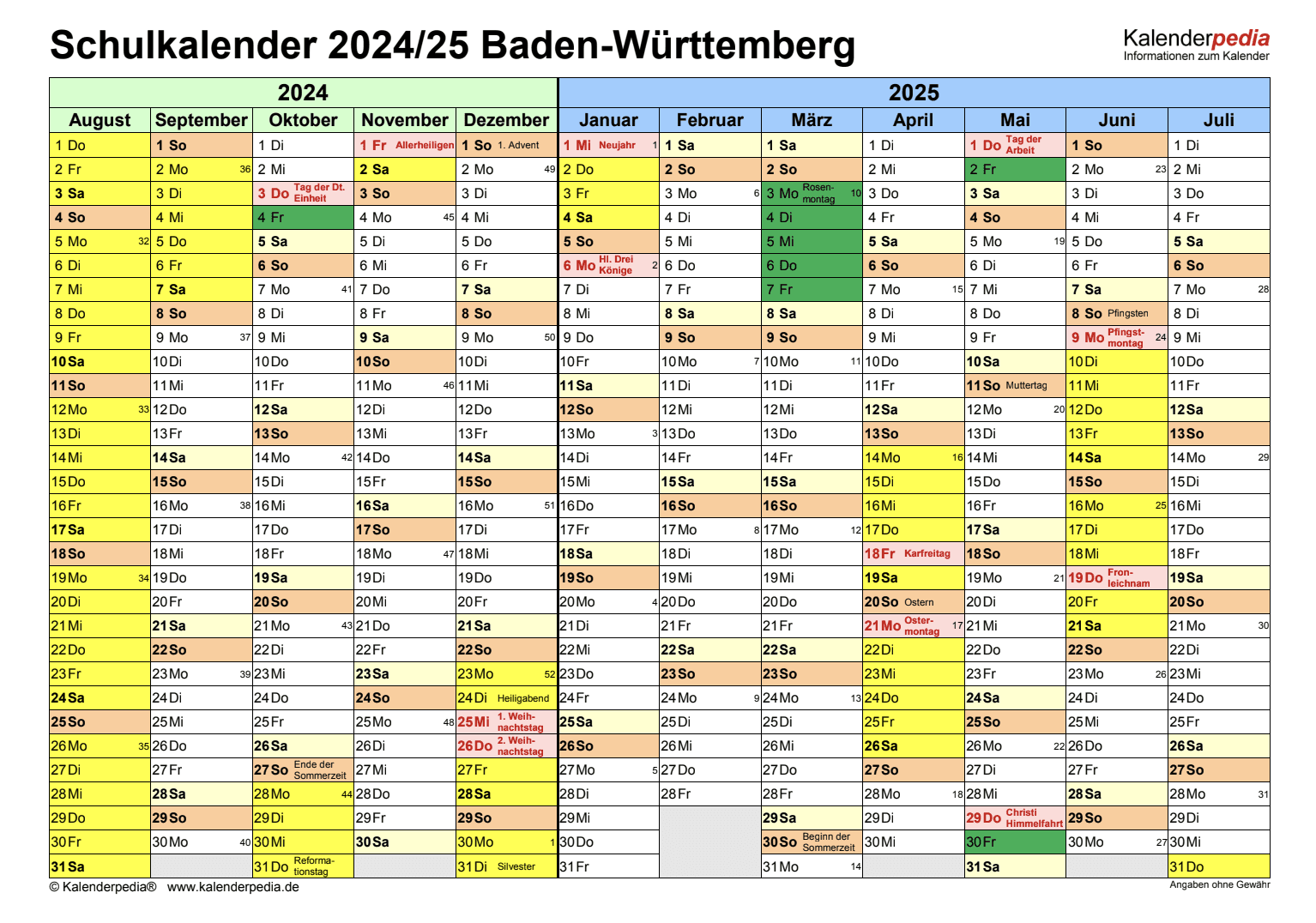 Gesetzliche und bewegliche Feiertage sowie Ferienkalender (aktuelles & kommendes Schuljahr)